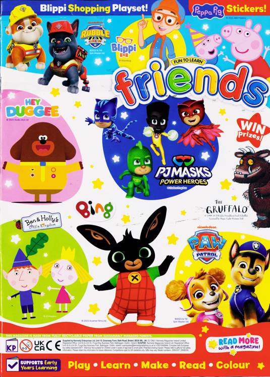 Magazine combining fun and learning through activities hosted by characters such as Peppa Pig, PJ Masks, PAW Patrol, Hey Duggee, The Gruffalo. and more. Fun to learn friends aims to bring on screen characters loved by the children onto the printed page and encourages them to enjoy reading, drawing and pictures.
