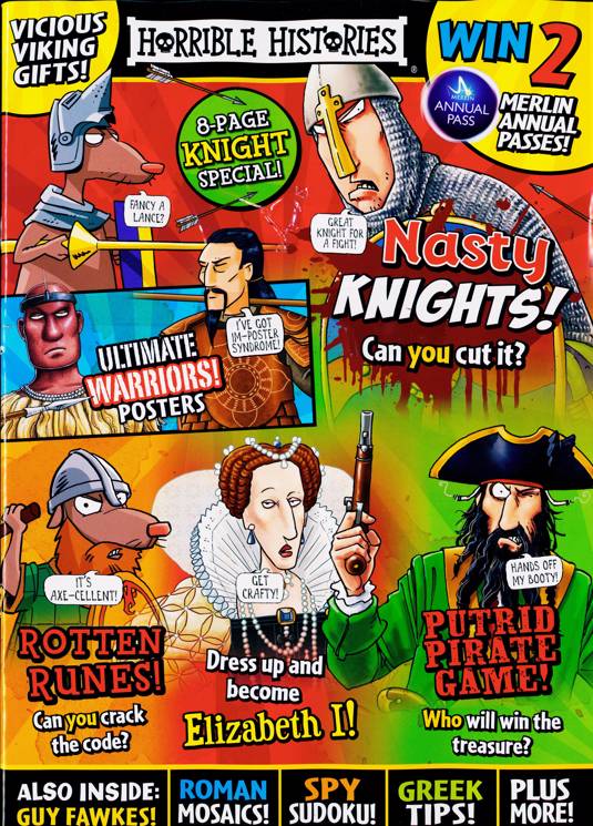 Buy a single copy of HORRIBLE HISTORIES or a subscription of your desired length, delivered worldwide. Current issues sent same day up to 3pm! All magazines sent by 1st Class Mail UK or 48 Hour tracked UK & by Airmail worldwide (bar UK over 750g and children's magazines with large free gifts which may go 2nd Class).