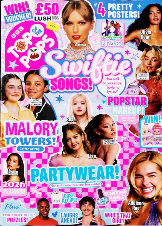 Buy a single copy of TOP OF THE POPS or a subscription of your desired length, delivered worldwide. Current issues sent same day up to 3pm! All magazines sent by 1st Class Mail UK or 48 Hour tracked UK & by Airmail worldwide (bar UK over 750g and children's magazines with large free gifts which may go 2nd Class).
