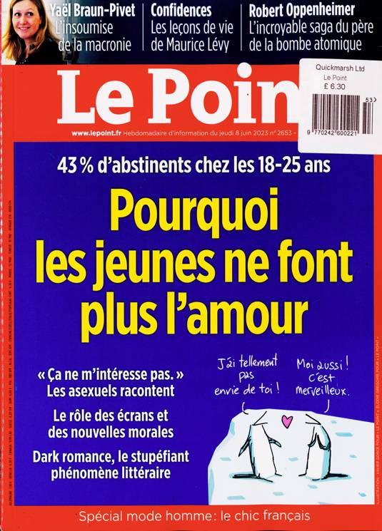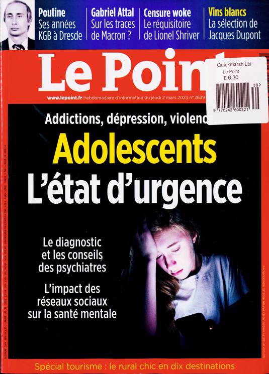 Buy a single copy of LE POINT or a subscription of your desired length, delivered worldwide. Current issues sent same day up to 3pm! All magazines sent by 1st Class Mail UK or 48 Hour tracked UK & by Airmail worldwide (bar UK over 750g which may go 2nd Class).