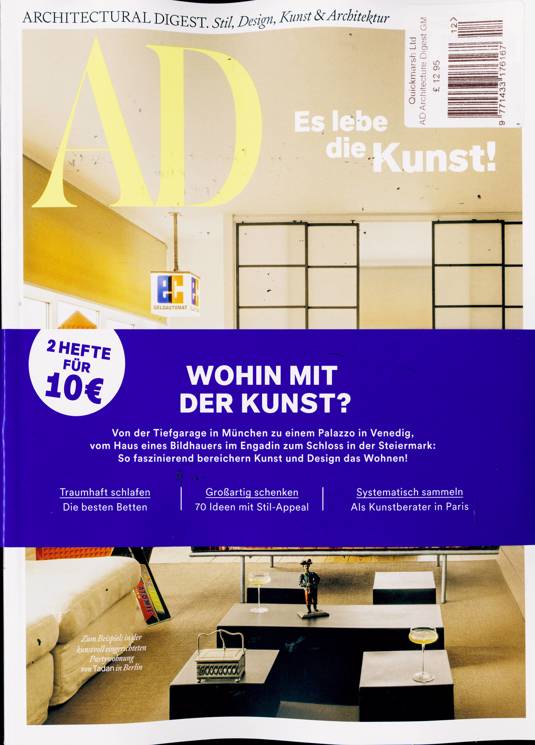 Buy a single copy of ARCHITECTURAL DIGEST GERMAN or a subscription of your desired length, delivered worldwide. Current issues sent same day up to 3pm! All magazines sent by 1st Class Mail UK or 48 Hour tracked UK & by Airmail worldwide (bar UK over 750g which may go 2nd Class).