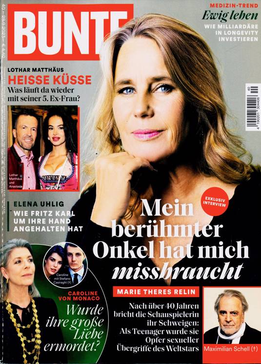 Buy a single copy of BUNTE ILLUSTRIERTE or a subscription of your desired length, delivered worldwide. Current issues sent same day up to 3pm! All magazines sent by 1st Class Mail UK or 48 Hour tracked UK & by Airmail worldwide (bar UK over 750g which may go 2nd Class).