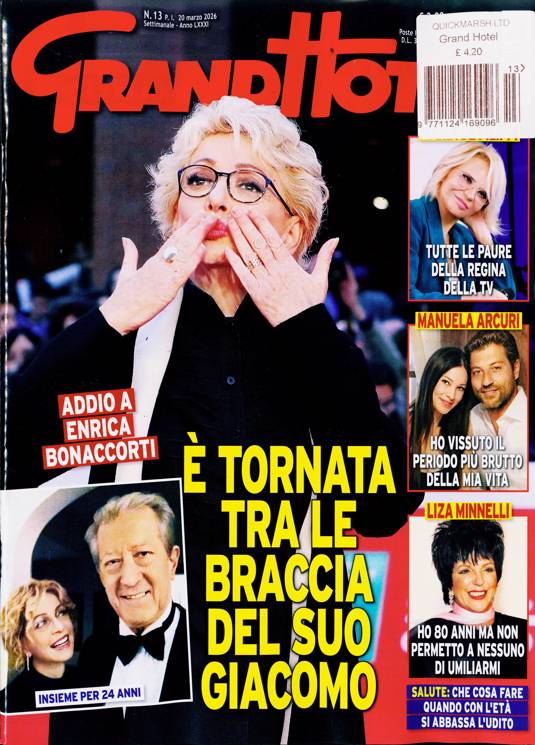 Buy a single copy of GRAND HOTEL (ITALIAN) WKY or a subscription of your desired length, delivered worldwide. Current issues sent same day up to 3pm! All magazines sent by 1st Class Mail UK or 48 Hour tracked UK & by Airmail worldwide (bar UK over 750g which may go 2nd Class).