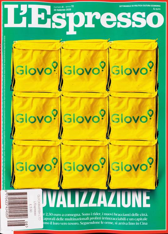 Buy a single copy of L ESPRESSO or a subscription of your desired length, delivered worldwide. Current issues sent same day up to 3pm! All magazines sent by 1st Class Mail UK or 48 Hour tracked UK & by Airmail worldwide (bar UK over 750g which may go 2nd Class).
