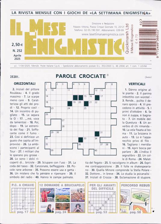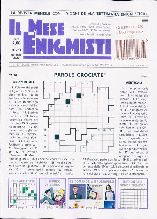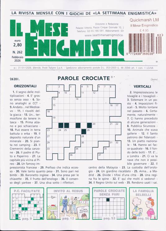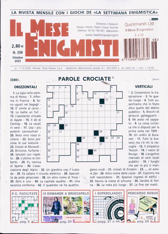 Buy a single copy of IL MESE ENIGMISTICO or a subscription of your desired length, delivered worldwide. Current issues sent same day up to 3pm! All magazines sent by 1st Class Mail UK or 48 Hour tracked UK & by Airmail worldwide (bar UK over 750g which may go 2nd Class).