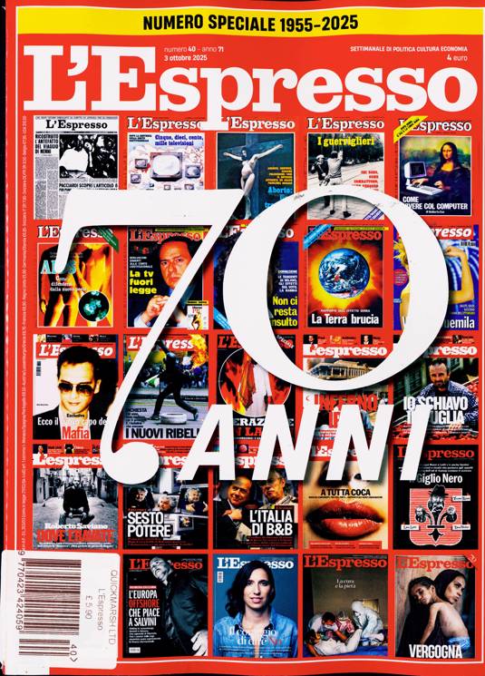 Buy a single copy of L ESPRESSO or a subscription of your desired length, delivered worldwide. Current issues sent same day up to 3pm! All magazines sent by 1st Class Mail UK or 48 Hour tracked UK & by Airmail worldwide (bar UK over 750g which may go 2nd Class).