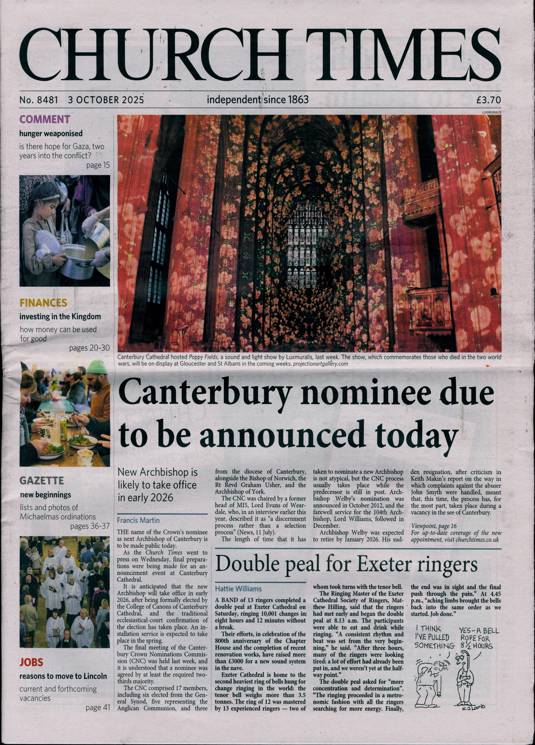 Buy a single copy of CHURCH TIMES or a subscription of your desired length, delivered worldwide. Current issues sent same day up to 3pm! All magazines sent by 1st Class Mail UK or 48 Hour tracked UK & by Airmail worldwide (bar UK over 750g which may go 2nd Class).