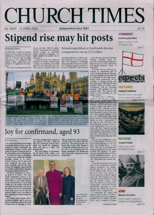 Buy a single copy of CHURCH TIMES or a subscription of your desired length, delivered worldwide. Current issues sent same day up to 3pm! All magazines sent by 1st Class Mail UK or 48 Hour tracked UK & by Airmail worldwide (bar UK over 750g which may go 2nd Class).