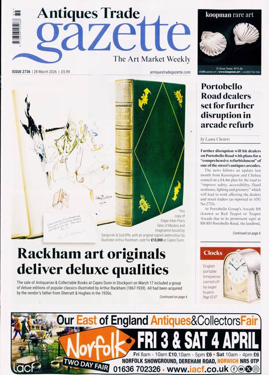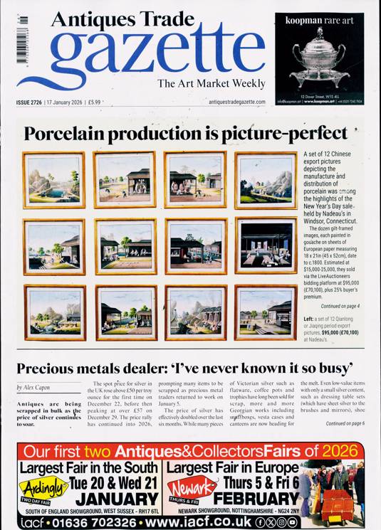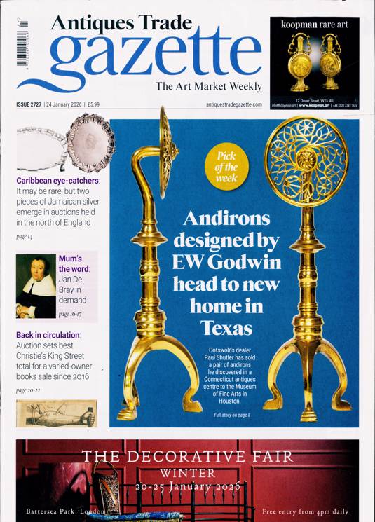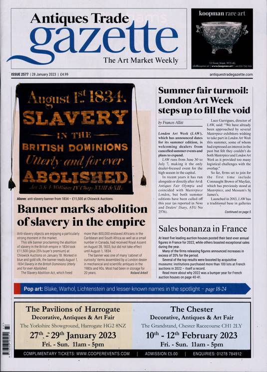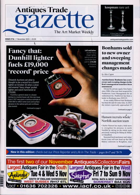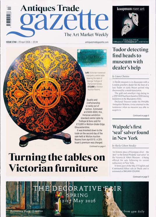 Antiques Trade Gazette keeps a finger on the pulse of ever-wavering prices, as public interest shifts through different periods of history and different focuses of interest, while also cataloguing some of the best examples to pass through the hands of dealers, and helping buyers to make an informed choice of item or dealer. It talks too on the history of the items themselves, telling the story of some remarkable antiques and fine works of art, and detailing their place in history, which is what makes the item in question exciting to the collector.
