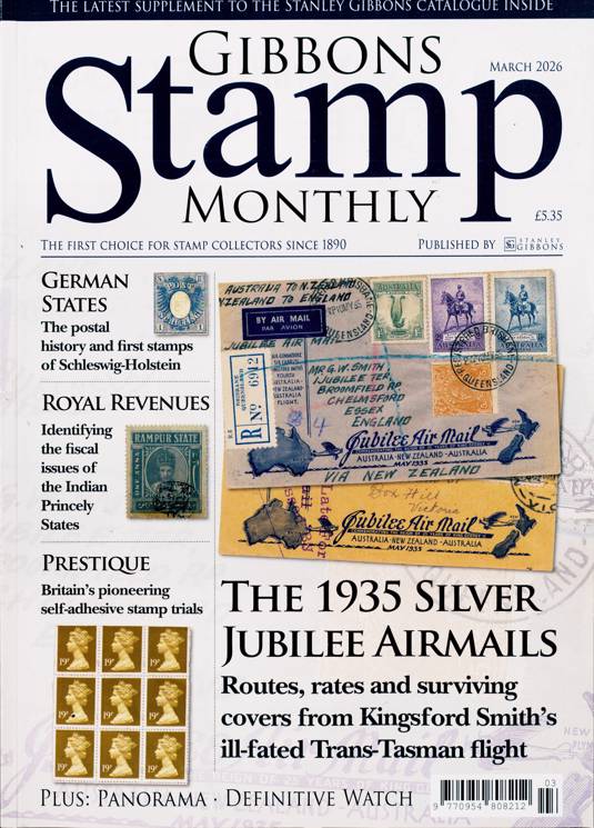 Buy a single copy of GIBBONS STAMP MONTHLY or a subscription of your desired length, delivered worldwide. Current issues sent same day up to 3pm! All magazines sent by 1st Class Mail UK or 48 Hour tracked UK & by Airmail worldwide (bar UK over 750g which may go 2nd Class).
