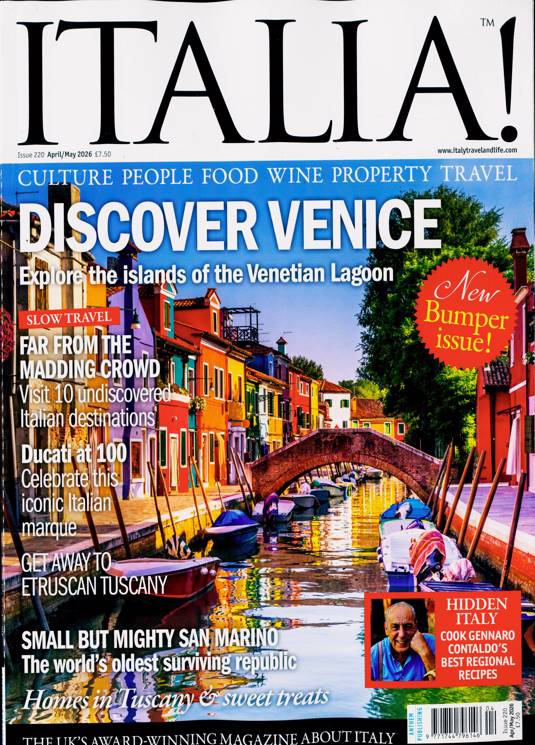 Italia! is the leading UK magazine about Italian property, travel, food, wine, culture, people and everything else concerned with the beautiful country of Italy. Every issue will help readers to get better acquainted with the country and increase their passion for Italy. This magazine will suit any lover of Italy, whether you want to move out there permanently, find a hotel for a holiday or just cook some Italian cuisine.