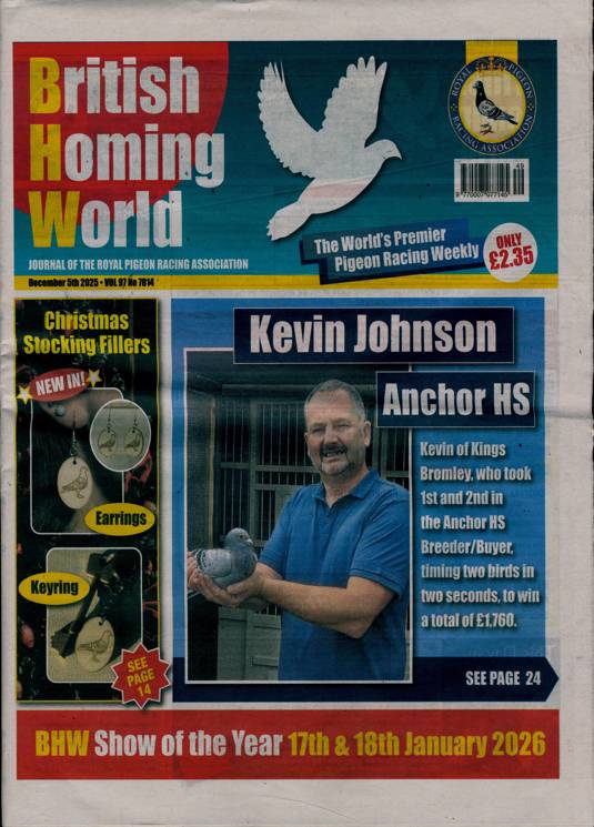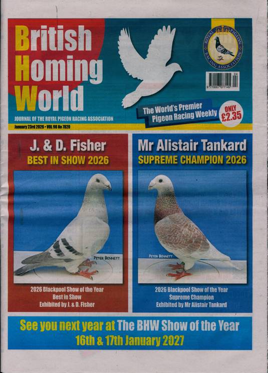 British Homing World is the must-read for every pigeon fancier who shares this fascination with racing pigeons, and carries all the information a pigeon fancier or pigeon racer will need to pursue this sport successfully. It has something for all ages: from a young fanciers’ club to a racing competition specifically designed for senior citizens.