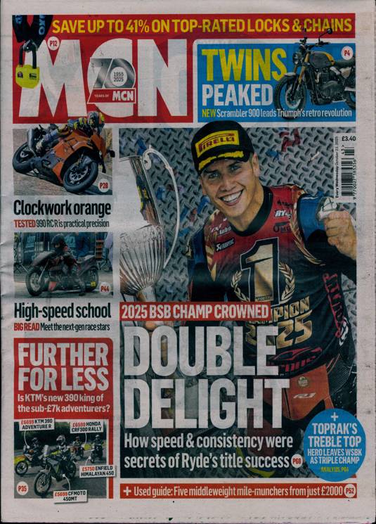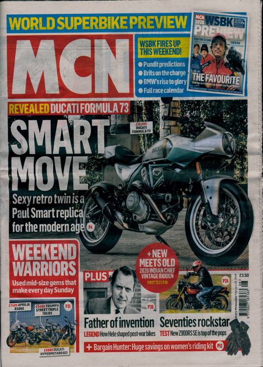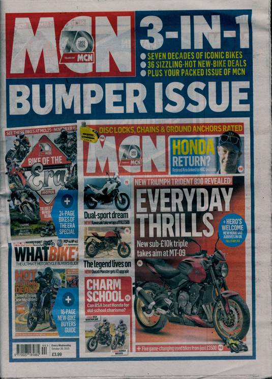 Buy a single copy of MOTORCYCLE NEWS or a subscription of your desired length, delivered worldwide. Current issues sent same day up to 3pm! All magazines sent by 1st Class Mail UK or 48 Hour tracked UK & by Airmail worldwide (bar UK over 750g which may go 2nd Class).