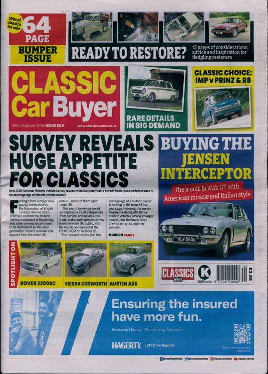 Buy a single copy of CLASSIC CAR BUYER or a subscription of your desired length, delivered worldwide. Current issues sent same day up to 3pm! All magazines sent by 1st Class Mail UK or 48 Hour tracked UK & by Airmail worldwide (bar UK over 750g which may go 2nd Class).