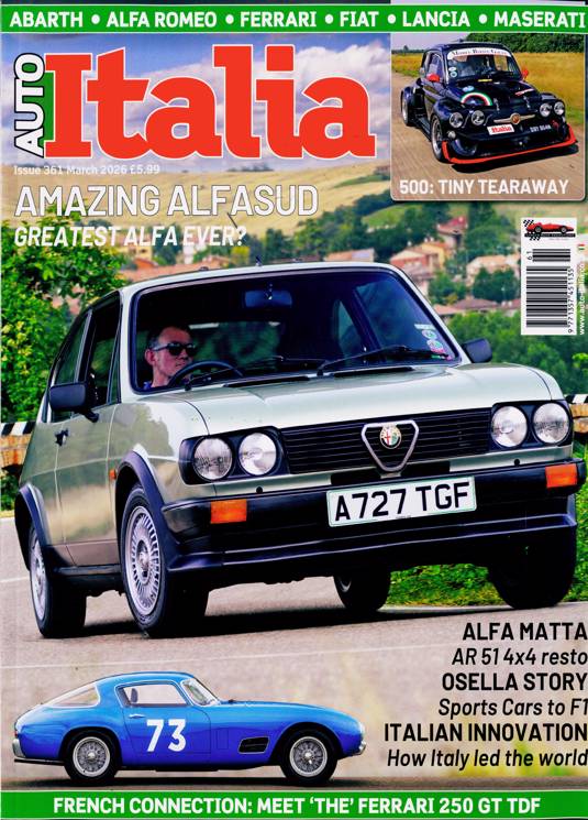Buy a single copy of AUTO ITALIA or a subscription of your desired length, delivered worldwide. Current issues sent same day up to 3pm! All magazines sent by 1st Class Mail UK or 48 Hour tracked UK & by Airmail worldwide (bar UK over 750g which may go 2nd Class).