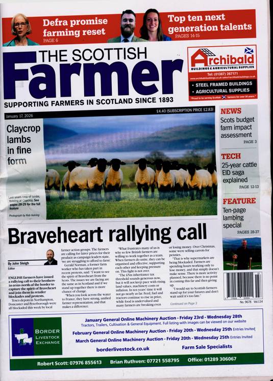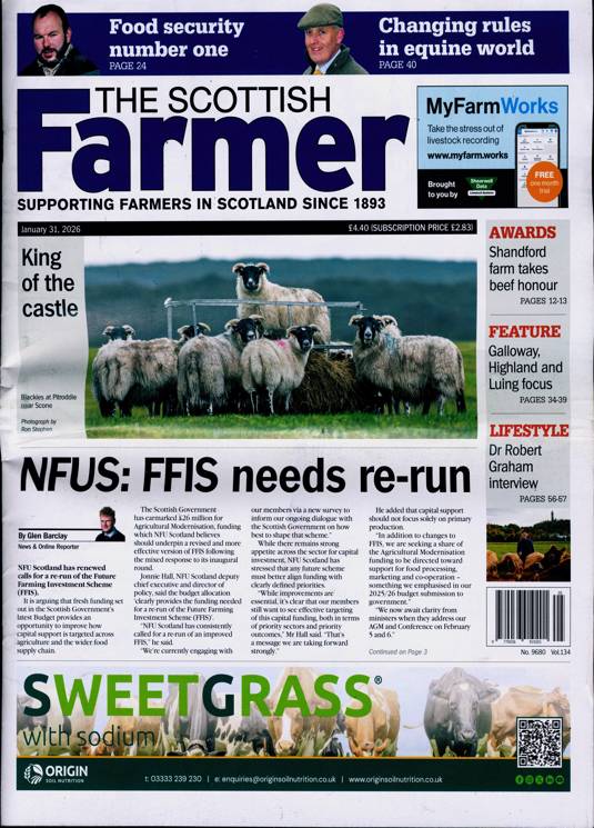 Buy a single copy of SCOTTISH FARMER or a subscription of your desired length, delivered worldwide. Current issues sent same day up to 3pm! All magazines sent by 1st Class Mail UK or 48 Hour tracked UK & by Airmail worldwide (bar UK over 750g which may go 2nd Class).