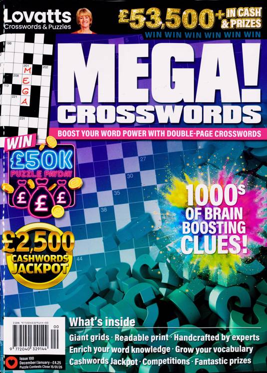 Buy a single copy of LOVATTS MEGA CROSSWORDS or a subscription of your desired length, delivered worldwide. Current issues sent same day up to 3pm! All magazines sent by 1st Class Mail UK or 48 Hour tracked UK & by Airmail worldwide (bar UK over 750g which may go 2nd Class).