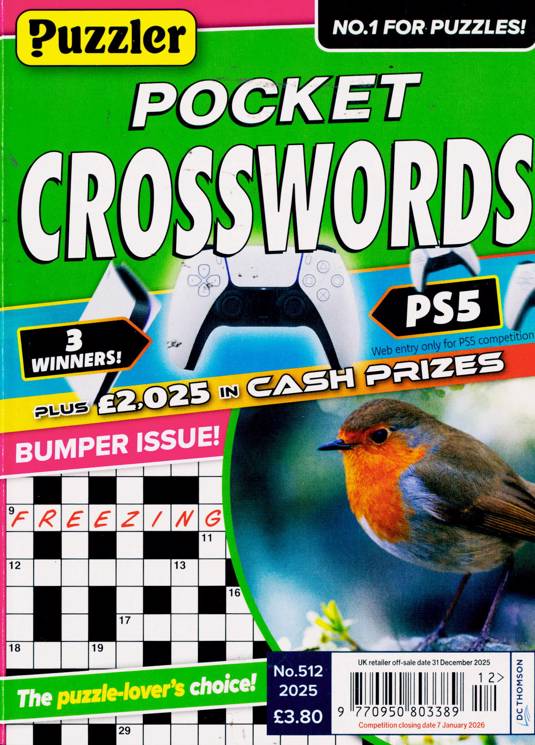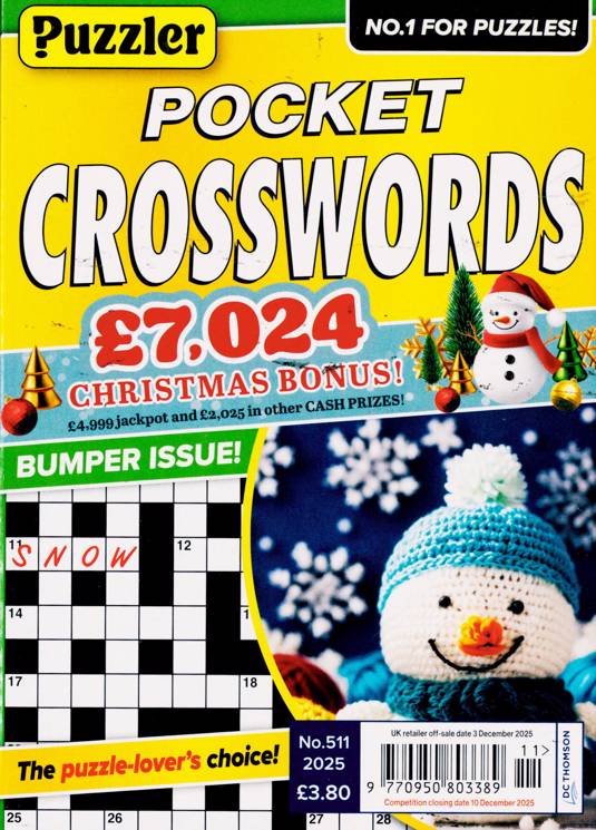 Buy a single copy of PUZZLER POCKET CROSSWORDS or a subscription of your desired length, delivered worldwide. Current issues sent same day up to 3pm! All magazines sent by 1st Class Mail UK or 48 Hour tracked UK & by Airmail worldwide (bar UK over 750g which may go 2nd Class).