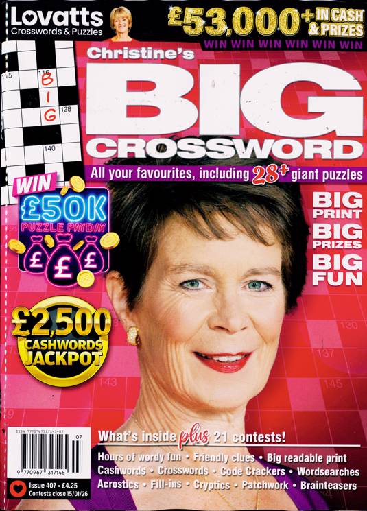 Buy a single copy of LOVATTS BIG CROSSWORD or a subscription of your desired length, delivered worldwide. Current issues sent same day up to 3pm! All magazines sent by 1st Class Mail UK or 48 Hour tracked UK & by Airmail worldwide (bar UK over 750g which may go 2nd Class).
