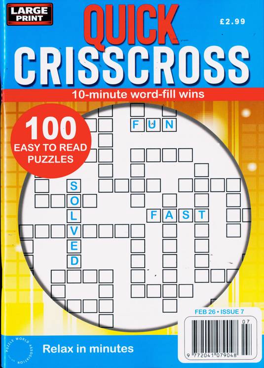 Buy a single copy of QUICK CRISS CROSS or a subscription of your desired length, delivered worldwide. Current issues sent same day up to 3pm! All magazines sent by 1st Class Mail UK or 48 Hour tracked UK & by Airmail worldwide (bar UK over 750g which may go 2nd Class).