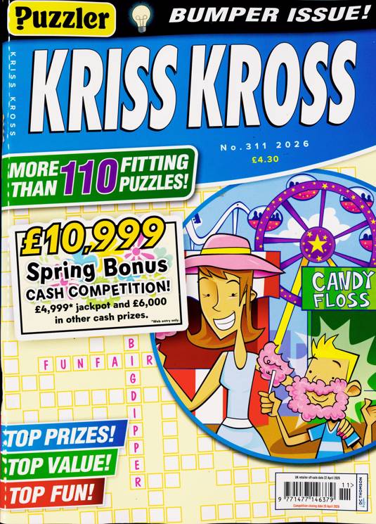 Buy a single copy of PUZZLER KRISS KROSS or a subscription of your desired length, delivered worldwide. Current issues sent same day up to 3pm! All magazines sent by 1st Class Mail UK or 48 Hour tracked UK & by Airmail worldwide (bar UK over 750g which may go 2nd Class).