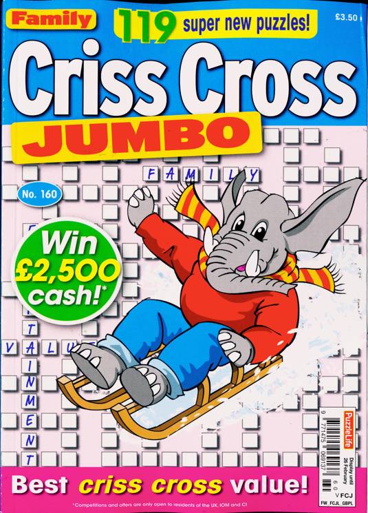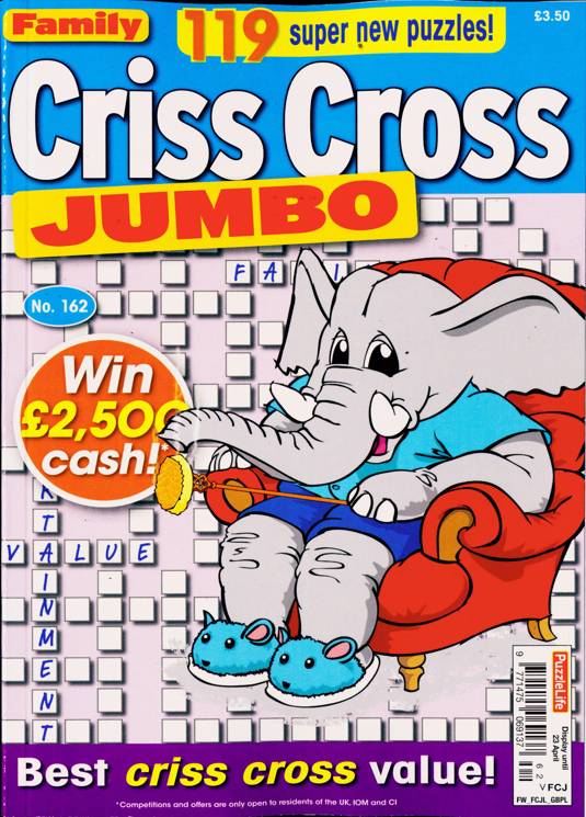 Buy a single copy of FAMILY CRISS CROSS JUMBO or a subscription of your desired length, delivered worldwide. Current issues sent same day up to 3pm! All magazines sent by 1st Class Mail UK or 48 Hour tracked UK & by Airmail worldwide (bar UK over 750g which may go 2nd Class).