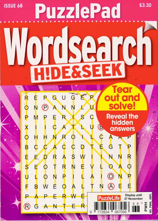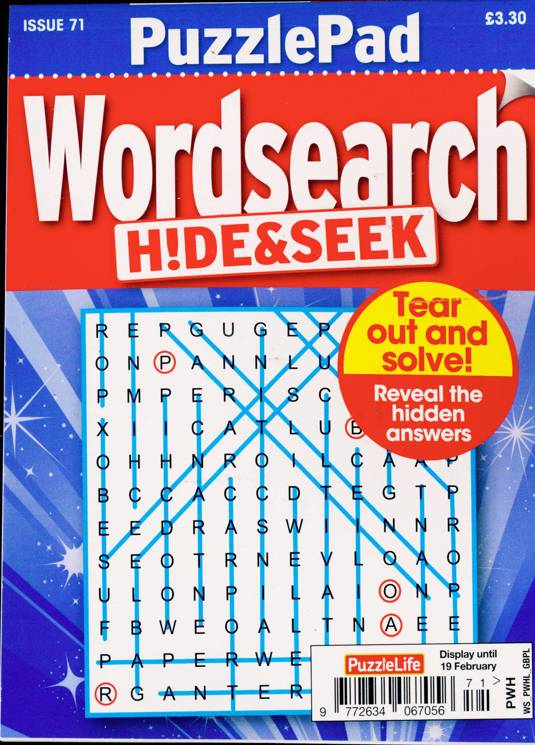 Buy a single copy of PUZZLELIFE PPAD WORDSEARCH H&S or a subscription of your desired length, delivered worldwide. Current issues sent same day up to 3pm! All magazines sent by 1st Class Mail UK or 48 Hour tracked UK & by Airmail worldwide (bar UK over 750g which may go 2nd Class).