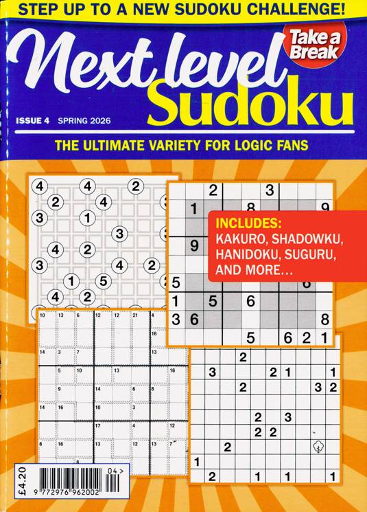 Buy a single copy of TAB NEXT LEVEL SUDOKU or a subscription of your desired length, delivered worldwide. Current issues sent same day up to 3pm! All magazines sent by 1st Class Mail UK or 48 Hour tracked UK & by Airmail worldwide (bar UK over 750g which may go 2nd Class).