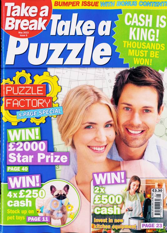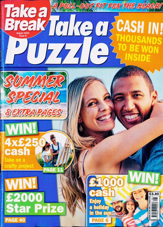 Buy a single copy of TAKE A BREAK TAKE A PUZZLE or a subscription of your desired length, delivered worldwide. Current issues sent same day up to 3pm! All magazines sent by 1st Class Mail UK or 48 Hour tracked UK & by Airmail worldwide (bar UK over 750g which may go 2nd Class).