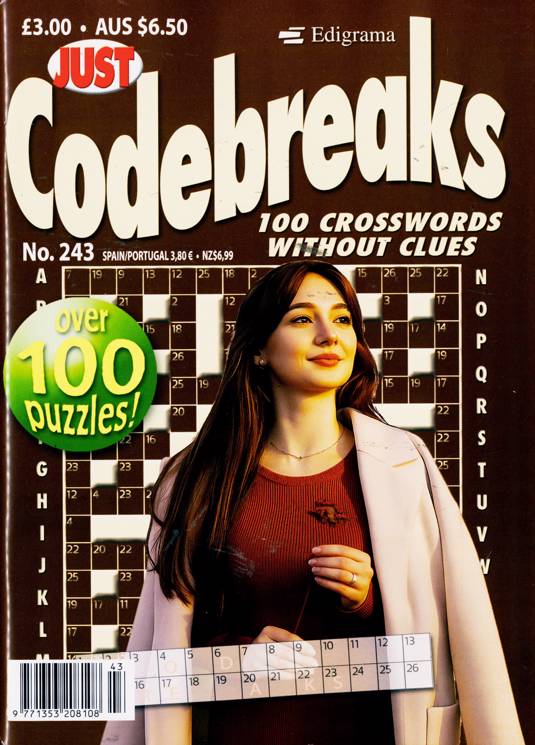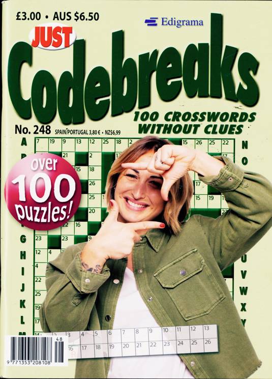 Buy a single copy of JUST CODEBREAKS or a subscription of your desired length, delivered worldwide. Current issues sent same day up to 3pm! All magazines sent by 1st Class Mail UK or 48 Hour tracked UK & by Airmail worldwide (bar UK over 750g which may go 2nd Class).
