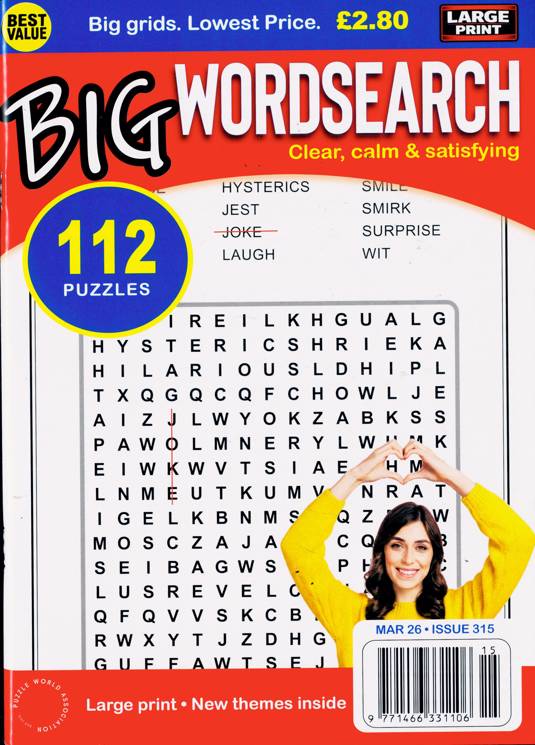 Buy a single copy of BIG WORDSEARCH or a subscription of your desired length, delivered worldwide. Current issues sent same day up to 3pm! All magazines sent by 1st Class Mail UK or 48 Hour tracked UK & by Airmail worldwide (bar UK over 750g which may go 2nd Class).