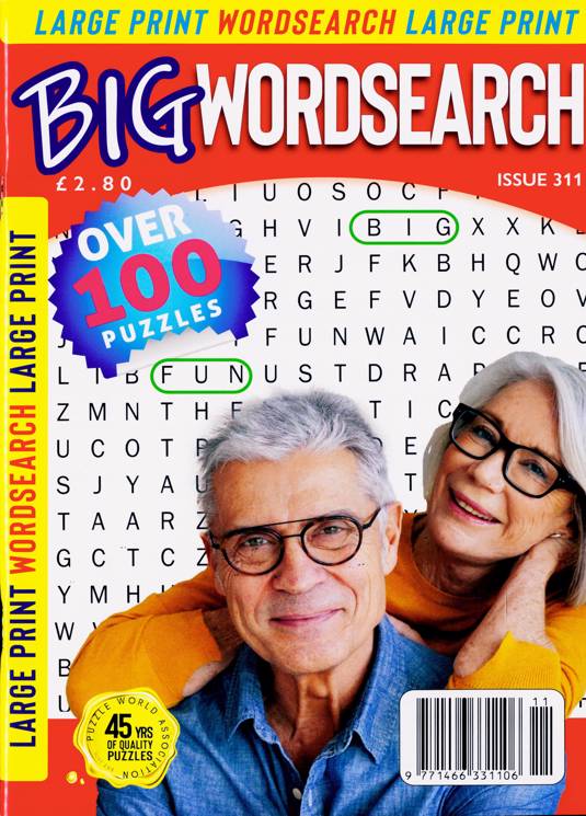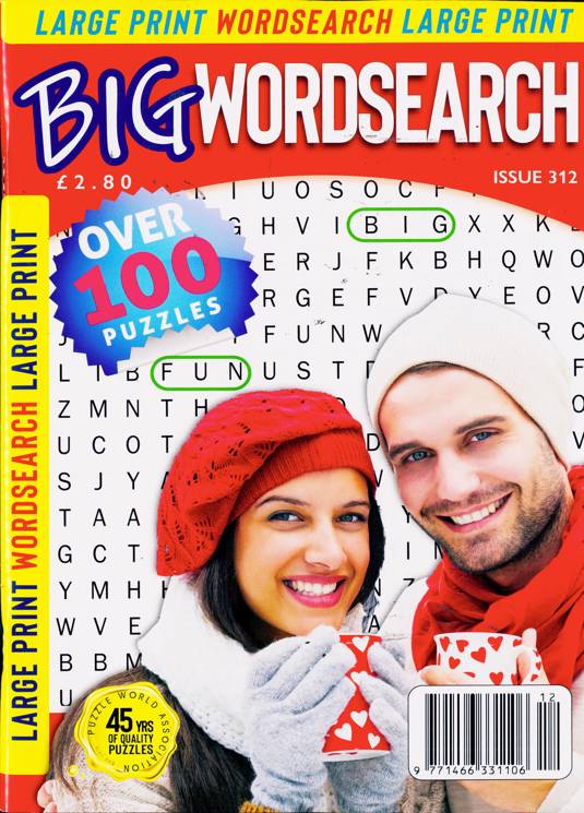 Buy a single copy of BIG WORDSEARCH or a subscription of your desired length, delivered worldwide. Current issues sent same day up to 3pm! All magazines sent by 1st Class Mail UK or 48 Hour tracked UK & by Airmail worldwide (bar UK over 750g which may go 2nd Class).