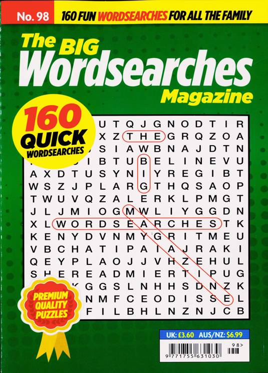 Buy a single copy of BIG WORDSEARCH MAGAZINE or a subscription of your desired length, delivered worldwide. Current issues sent same day up to 3pm! All magazines sent by 1st Class Mail UK or 48 Hour tracked UK & by Airmail worldwide (bar UK over 750g which may go 2nd Class).