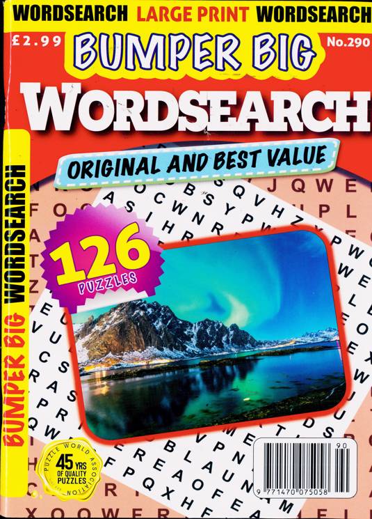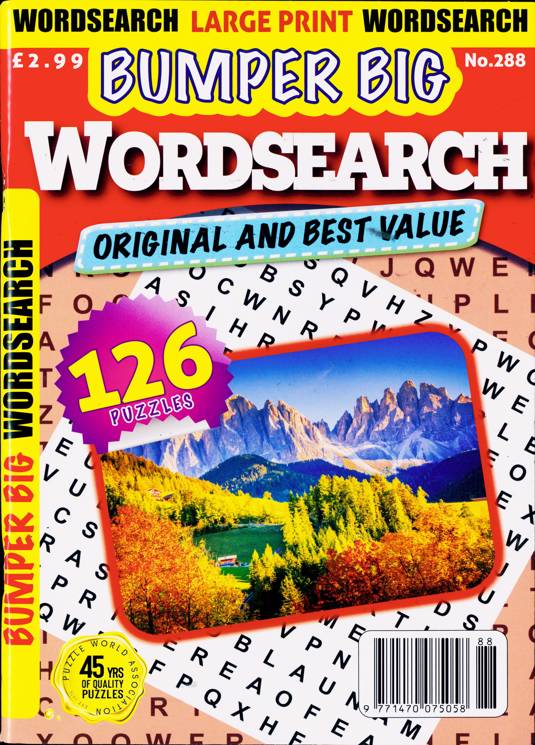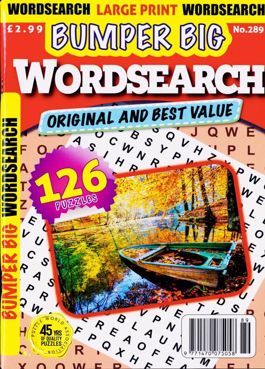 Buy a single copy of BUMPER BIG WORDSEARCH or a subscription of your desired length, delivered worldwide. Current issues sent same day up to 3pm! All magazines sent by 1st Class Mail UK or 48 Hour tracked UK & by Airmail worldwide (bar UK over 750g which may go 2nd Class).