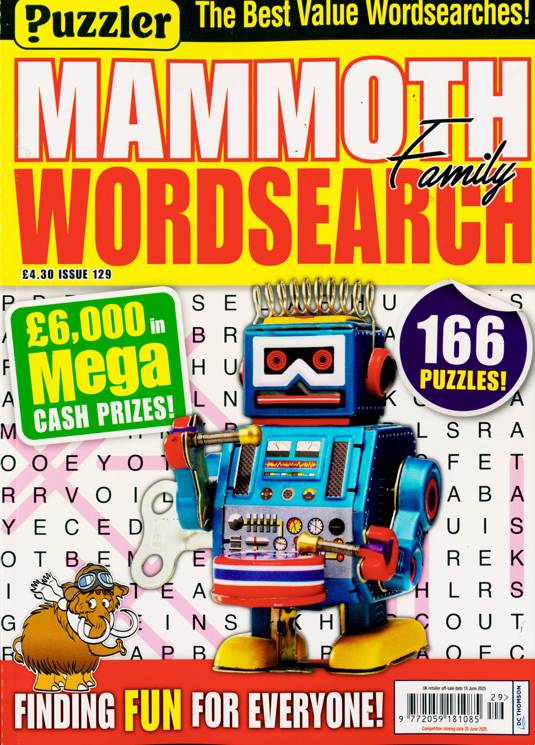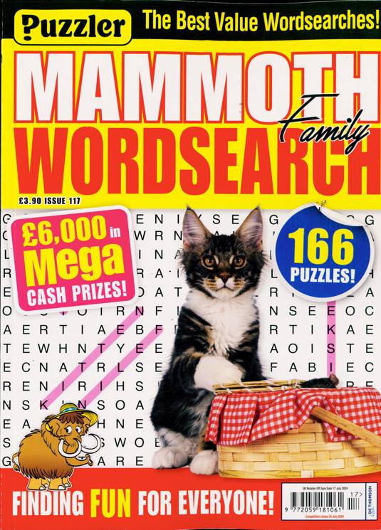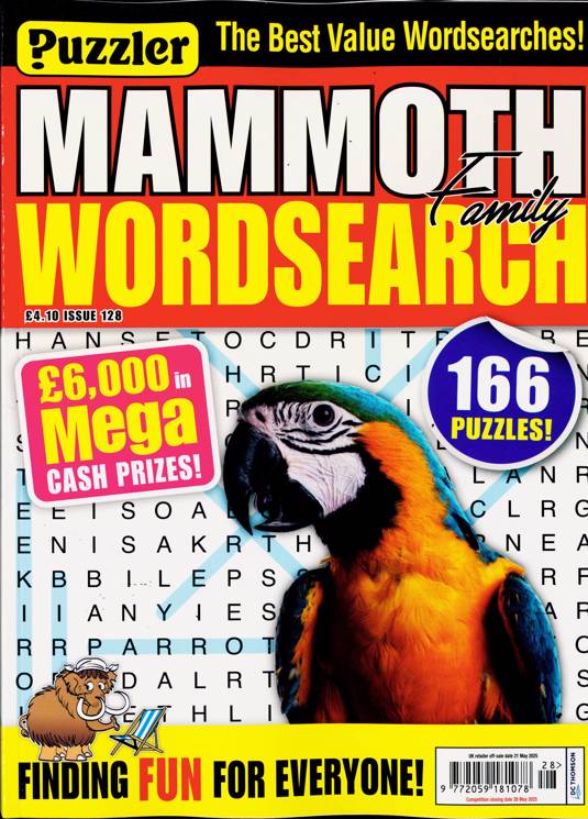Buy a single copy of PUZZ MAMMOTH FAM WORDSEARCH or a subscription of your desired length, delivered worldwide. Current issues sent same day up to 3pm! All magazines sent by 1st Class Mail UK or 48 Hour tracked UK & by Airmail worldwide (bar UK over 750g which may go 2nd Class).