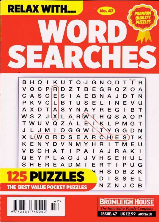 Buy a single copy of RELAX WITH WORDSEARCHES or a subscription of your desired length, delivered worldwide. Current issues sent same day up to 3pm! All magazines sent by 1st Class Mail UK or 48 Hour tracked UK & by Airmail worldwide (bar UK over 750g which may go 2nd Class).