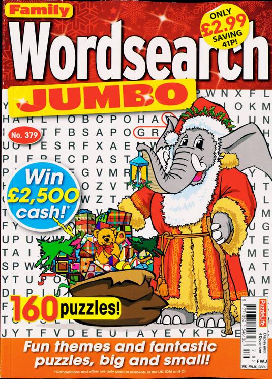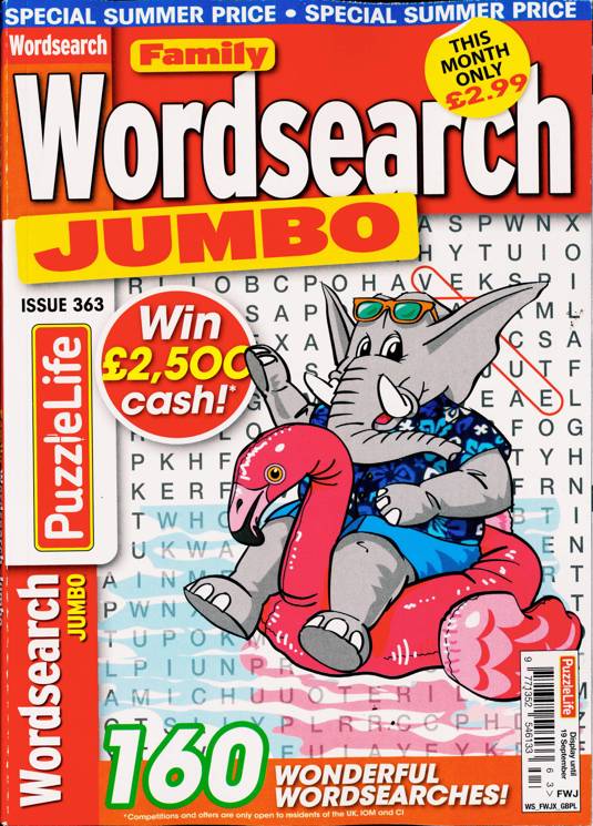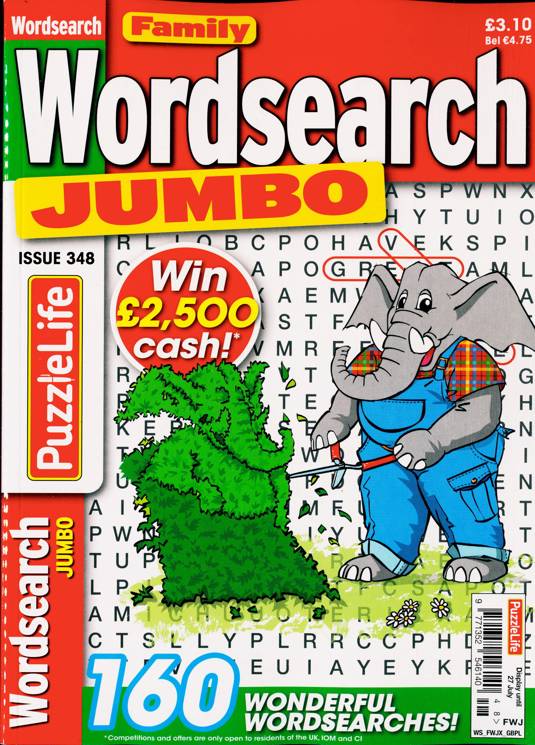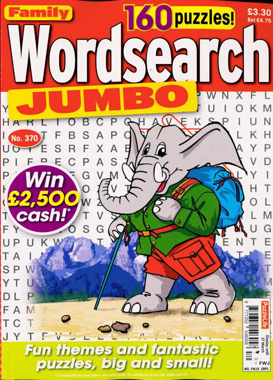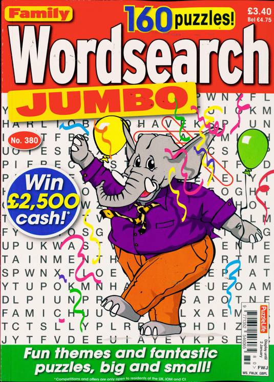 Buy a single copy of FAMILY WORDSEARCH JUMBO or a subscription of your desired length, delivered worldwide. Current issues sent same day up to 3pm! All magazines sent by 1st Class Mail UK or 48 Hour tracked UK & by Airmail worldwide (bar UK over 750g which may go 2nd Class).