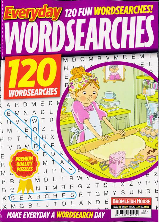 Buy a single copy of EVERYDAY WORDSEARCHES or a subscription of your desired length, delivered worldwide. Current issues sent same day up to 3pm! All magazines sent by 1st Class Mail UK or 48 Hour tracked UK & by Airmail worldwide (bar UK over 750g which may go 2nd Class).