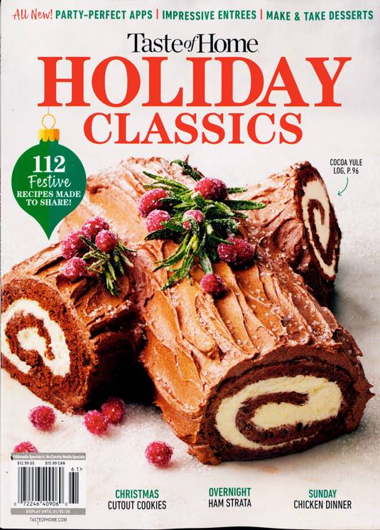 Buy a single copy of TASTE OF HOME HOLIDAY CLASSICS or a subscription of your desired length, delivered worldwide. Current issues sent same day up to 3pm! All magazines sent by 1st Class Mail UK or 48 Hour tracked UK & by Airmail worldwide (bar UK over 750g which may go 2nd Class).