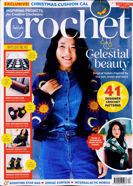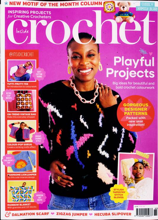 Inside Crochet magazine is a crochet magazine with a difference. It features all the latest crochet news, tips and techniques, including more than 13 original crochet patterns with every issue, with something for every skill level. Inside Crochet magazine brings you reviews of the latest products and yarns, informative and in-depth articles from different areas of the crochet world, and inspiring interviews and crochet suggestions to get your creativity fired up.