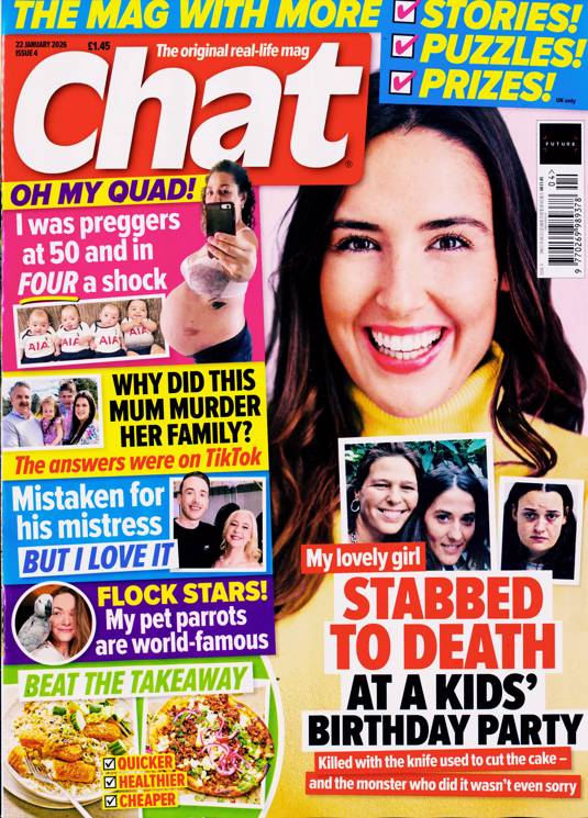 Buy a single copy of CHAT or a subscription of your desired length, delivered worldwide. Current issues sent same day up to 3pm! All magazines sent by 1st Class Mail UK or 48 Hour tracked UK & by Airmail worldwide (bar UK over 750g which may go 2nd Class).