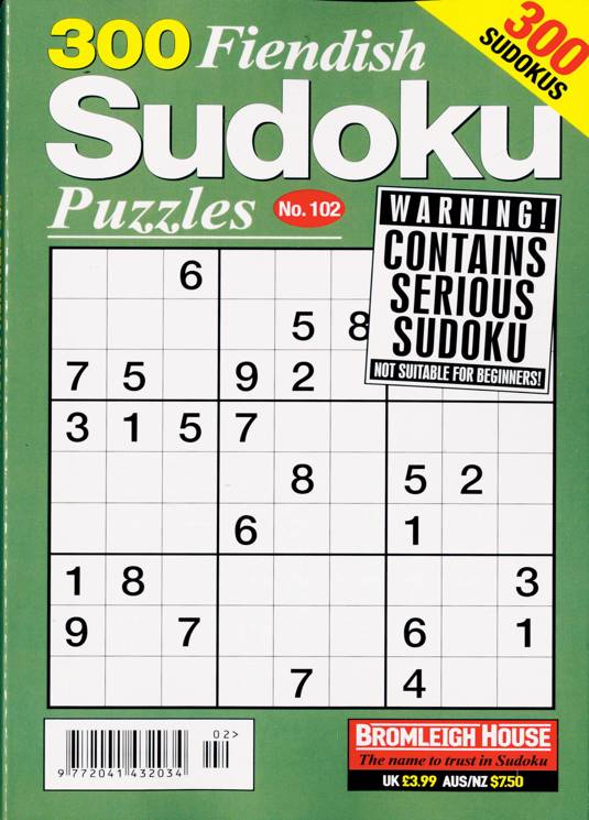 Buy a single copy of 300 FIENDISH SUDOKU PUZZLE or a subscription of your desired length, delivered worldwide. Current issues sent same day up to 3pm! All magazines sent by 1st Class Mail UK or 48 Hour tracked UK & by Airmail worldwide (bar UK over 750g which may go 2nd Class).
