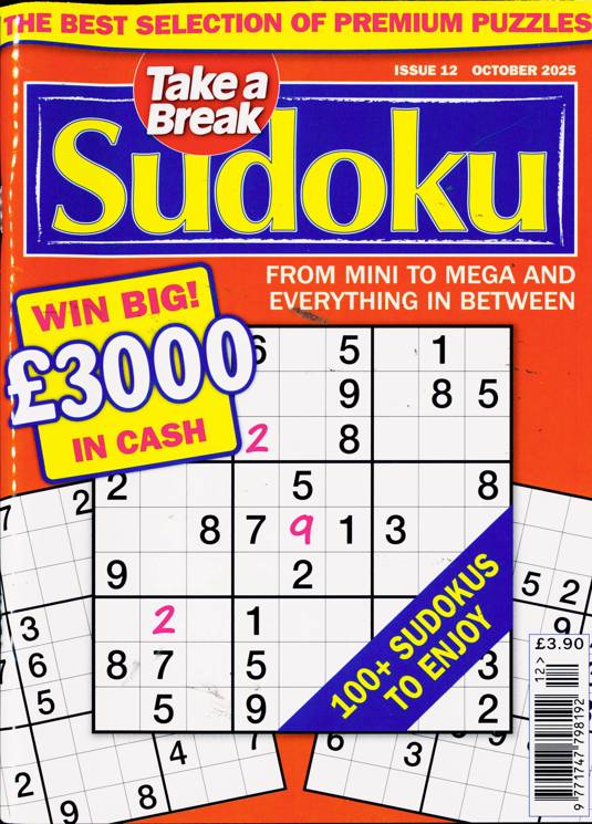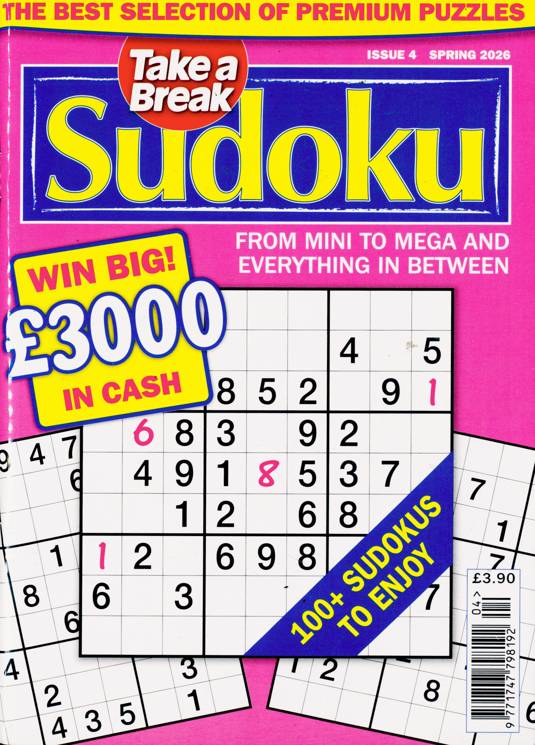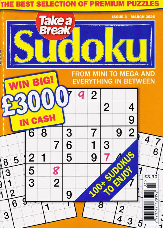 Buy a single copy of TAKE A BREAK SUDOKU or a subscription of your desired length, delivered worldwide. Current issues sent same day up to 3pm! All magazines sent by 1st Class Mail UK or 48 Hour tracked UK & by Airmail worldwide (bar UK over 750g which may go 2nd Class).