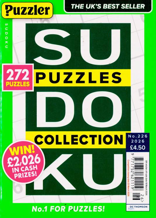 Buy a single copy of PUZZLER SUDOKU PUZZLE COLLECTION or a subscription of your desired length, delivered worldwide. Current issues sent same day up to 3pm! All magazines sent by 1st Class Mail UK or 48 Hour tracked UK & by Airmail worldwide (bar UK over 750g which may go 2nd Class).