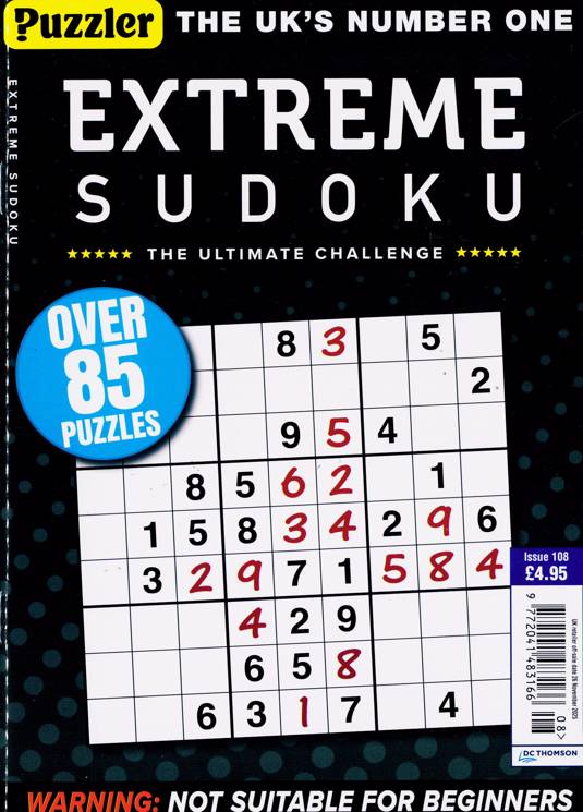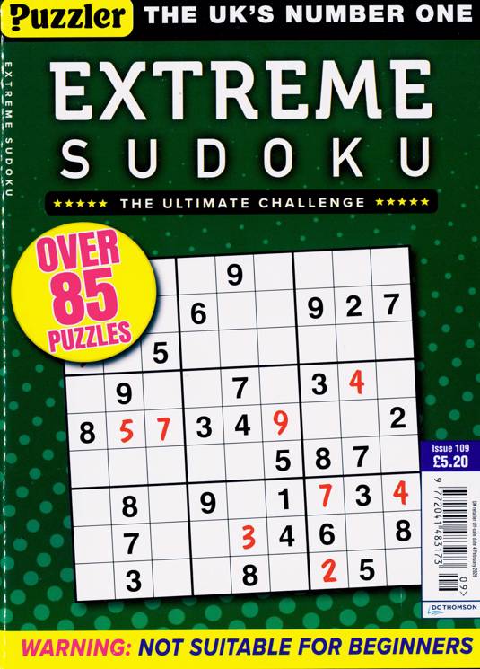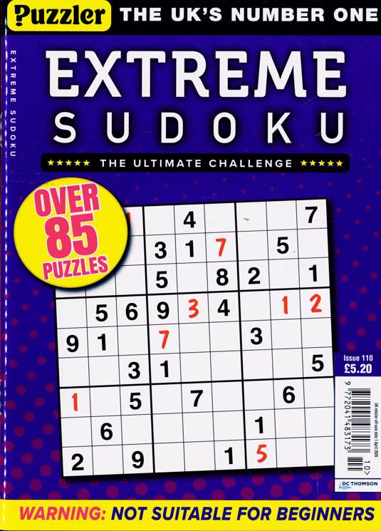 Buy a single copy of EXTREME SUDOKU or a subscription of your desired length, delivered worldwide. Current issues sent same day up to 3pm! All magazines sent by 1st Class Mail UK or 48 Hour tracked UK & by Airmail worldwide (bar UK over 750g which may go 2nd Class).