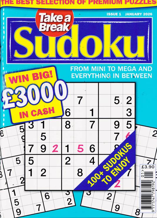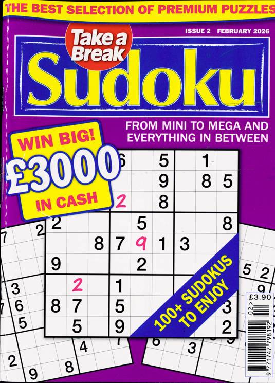 Buy a single copy of TAKE A BREAK SUDOKU or a subscription of your desired length, delivered worldwide. Current issues sent same day up to 3pm! All magazines sent by 1st Class Mail UK or 48 Hour tracked UK & by Airmail worldwide (bar UK over 750g which may go 2nd Class).
