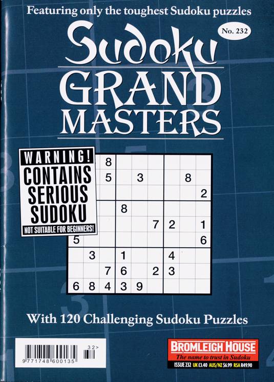 Buy a single copy of SUDOKU GRANDMASTER or a subscription of your desired length, delivered worldwide. Current issues sent same day up to 3pm! All magazines sent by 1st Class Mail UK or 48 Hour tracked UK & by Airmail worldwide (bar UK over 750g which may go 2nd Class).