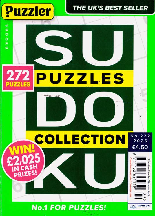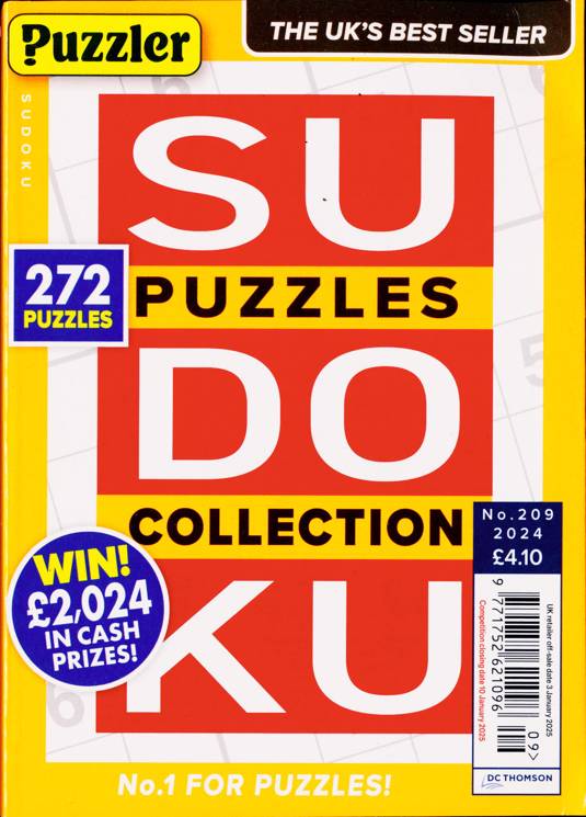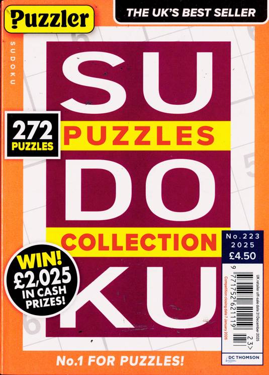 Buy a single copy of PUZZLER SUDOKU PUZZLE COLLECTION or a subscription of your desired length, delivered worldwide. Current issues sent same day up to 3pm! All magazines sent by 1st Class Mail UK or 48 Hour tracked UK & by Airmail worldwide (bar UK over 750g which may go 2nd Class).