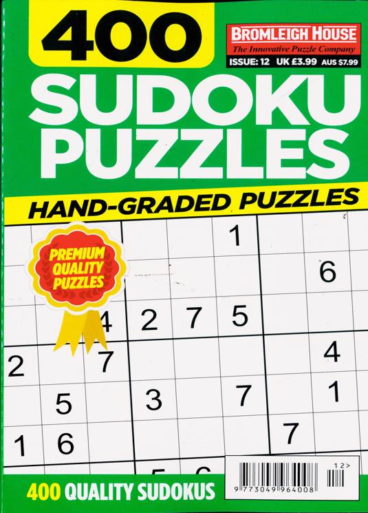 Buy a single copy of 400 SUDOKU PUZZLES or a subscription of your desired length, delivered worldwide. Current issues sent same day up to 3pm! All magazines sent by 1st Class Mail UK or 48 Hour tracked UK & by Airmail worldwide (bar UK over 750g which may go 2nd Class).