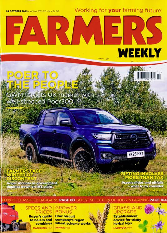Buy a single copy of FARMERS WEEKLY or a subscription of your desired length, delivered worldwide. Current issues sent same day up to 3pm! All magazines sent by 1st Class Mail UK or 48 Hour tracked UK & by Airmail worldwide (bar UK over 750g which may go 2nd Class).